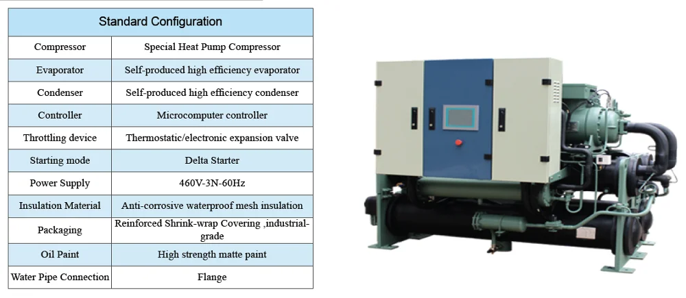 Water source screw type heat pump unit adopts twin screw compressors, it can be used for cooling and heating, or one unit with both functions: one system replaces the original boiler and air conditioning system to save a lot of energy while reducing the initial investment in equipment. Heating without boiler room system and cooling without cooling tower to achieve zero pollution and emission. Cooling capacity range: 70kw-5000kw; Heating capacity range: 80kw-6000kw.